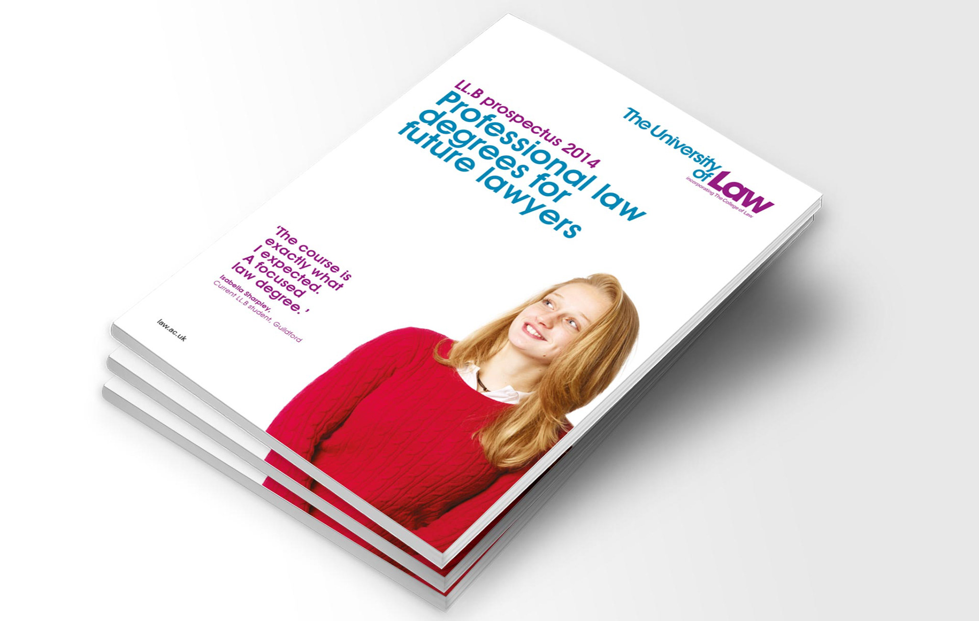 The University of Law is one of the leading providers of legal education. I worked on a number of marketing campaigns for the University included two prospectuses. Each campaign was centred around the real students and their quotes effectively executed across all online channels, advertising and print collateral.